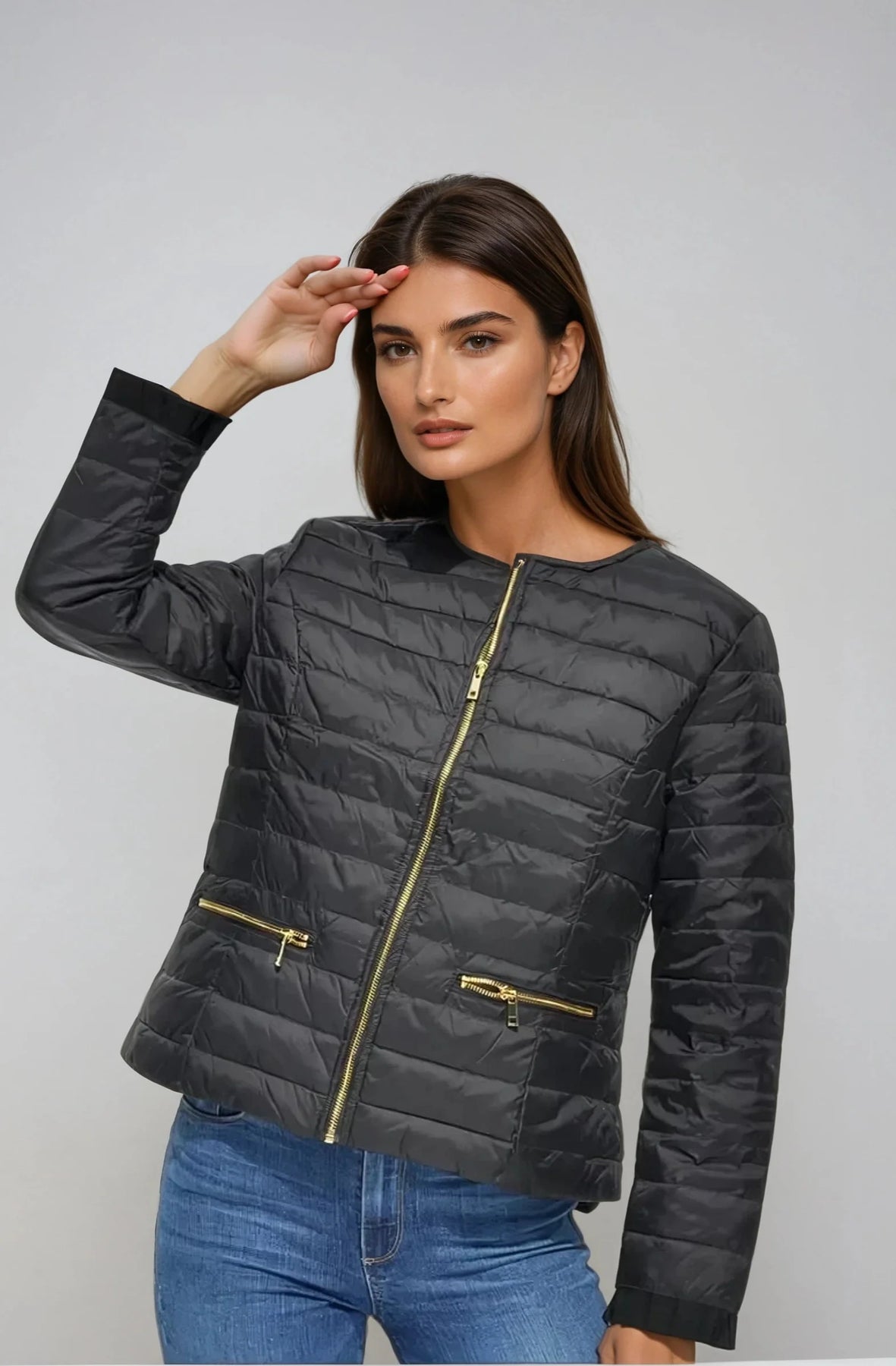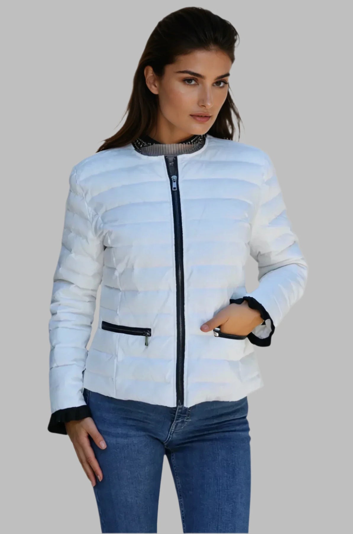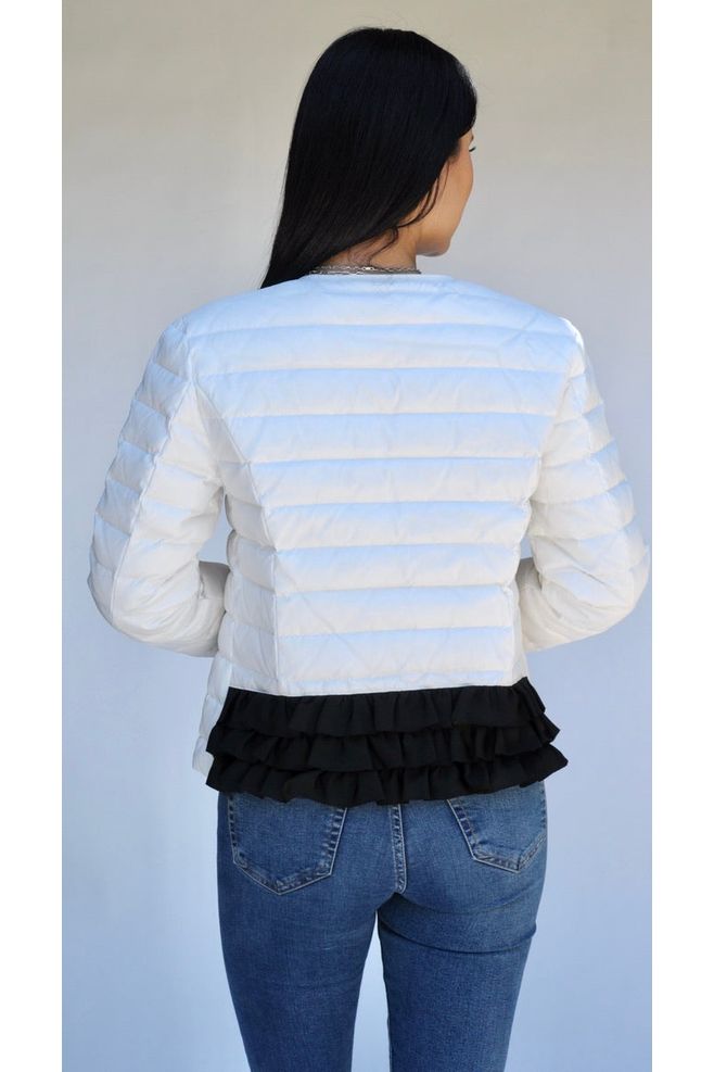 Light weight water resistance puffer jacket. Ciao Milano continues to up-style the basic puffer jacket. This item has replace most of cardigan sweater. With rows of ruffle in the lower back and on the cuff will give you the feeling you know how to purchase the ultimate puffer little jacket making Moncler, Herno and Burberry seem out of fashion.