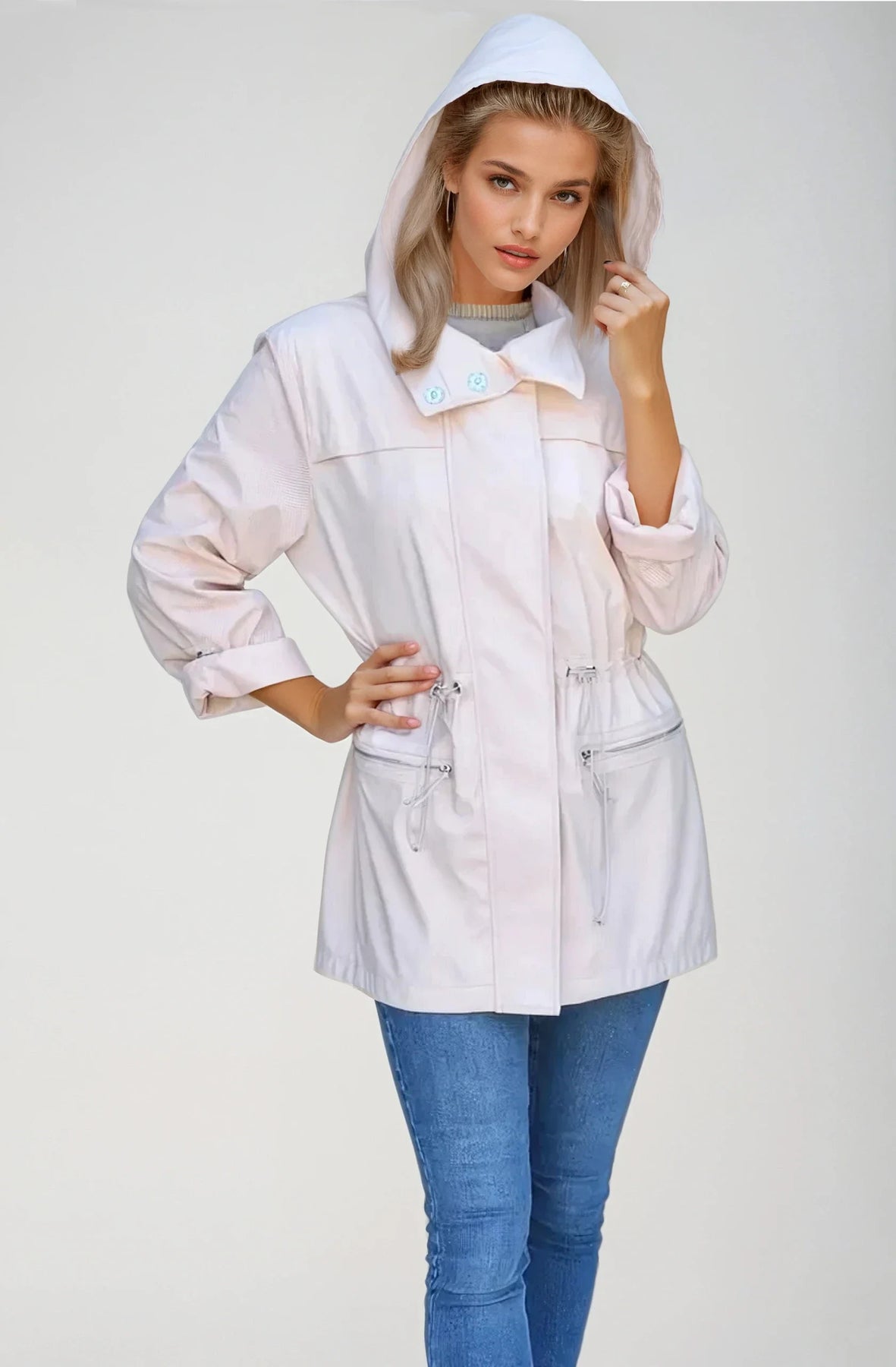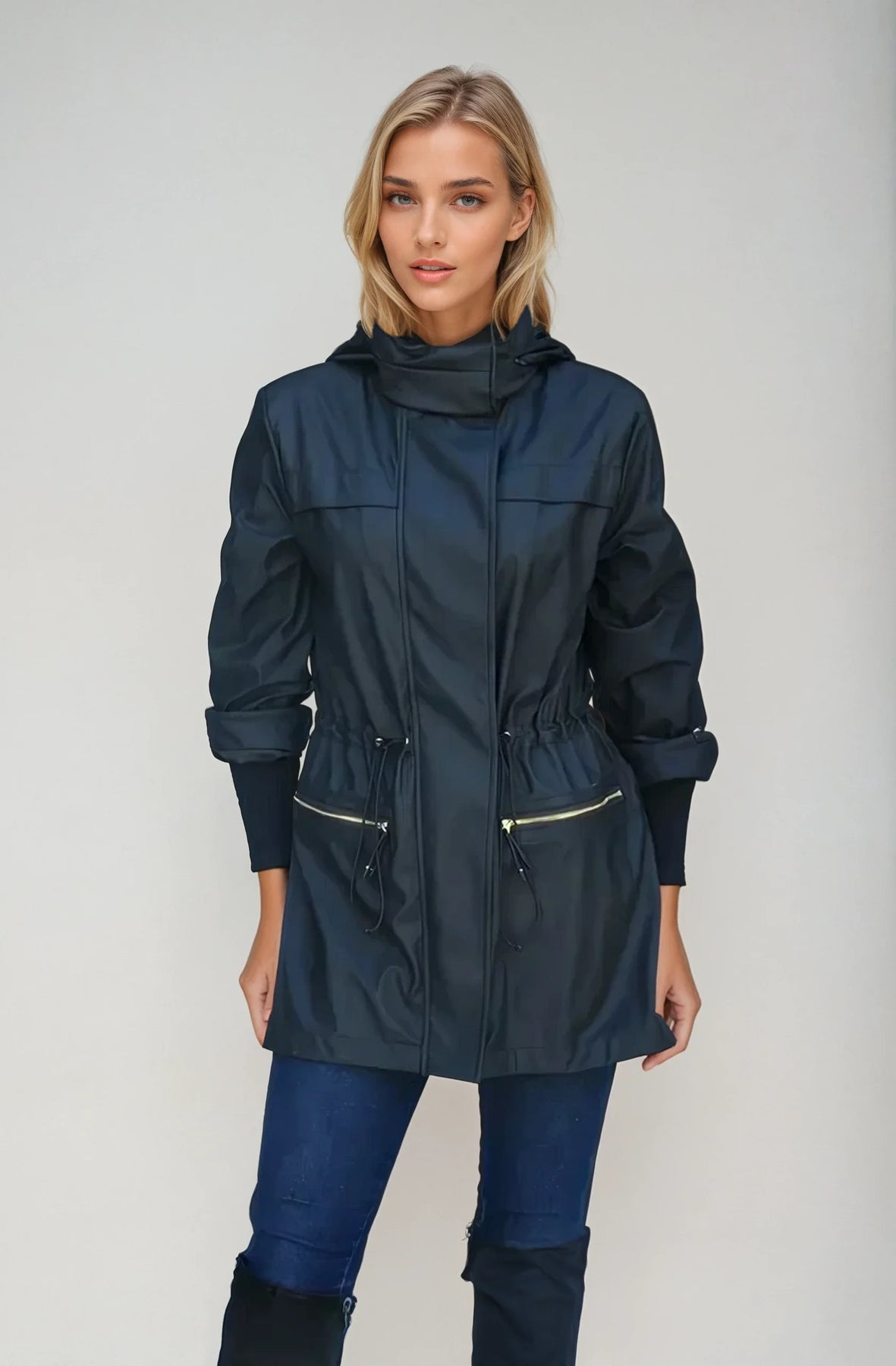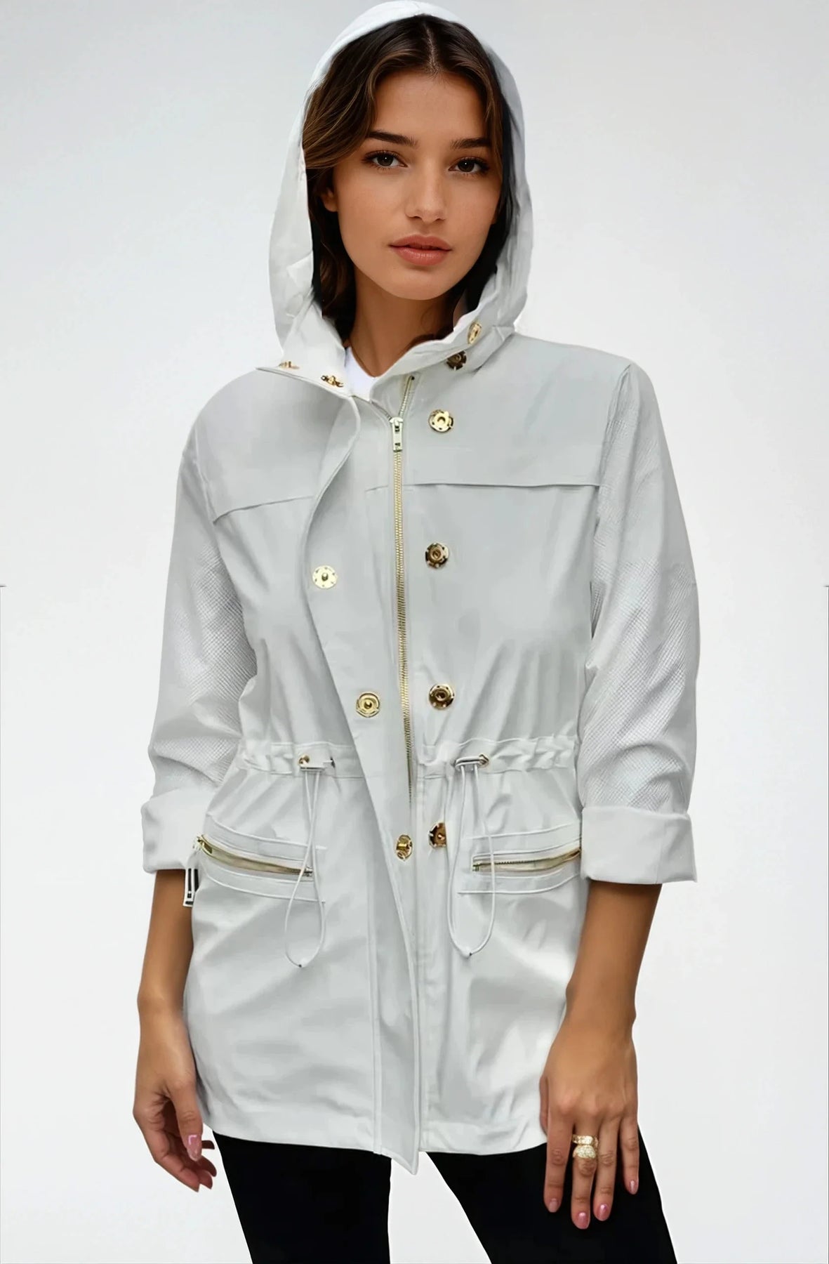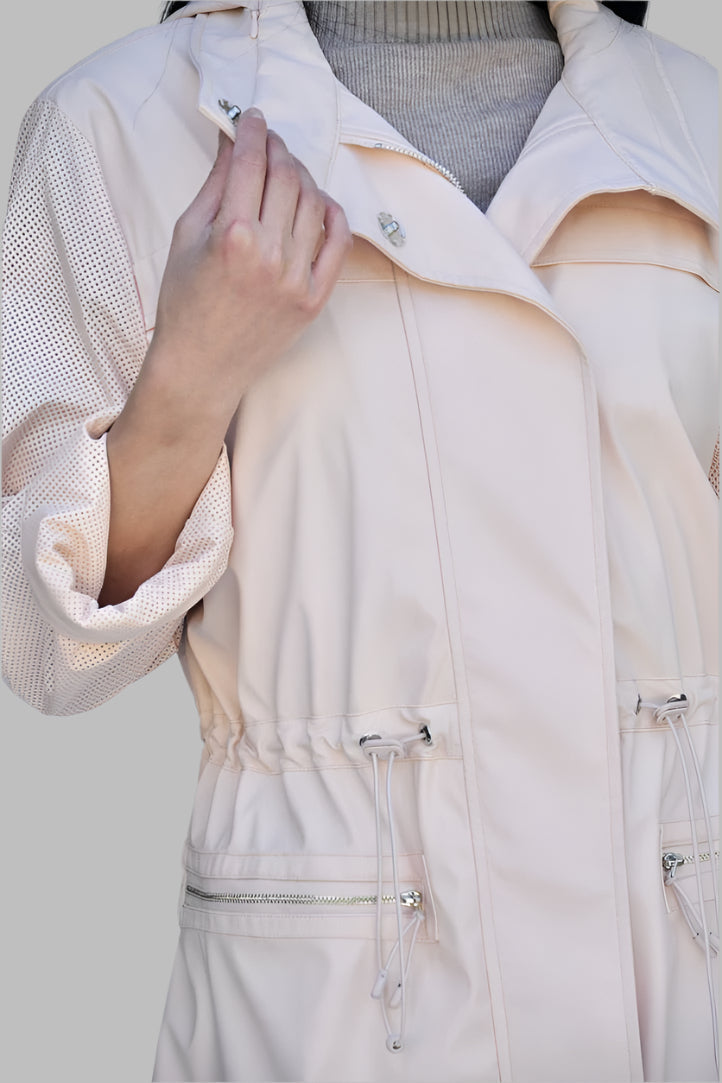 Designers choice. New fabric developed by Ciao Milano. Soft as butter, breathable, slick durable, flowing fabric. 100% waterproof but extremely rich-looking. Looks like a million dollars. Same specs and hardware as styles Tafani, Tess and Anna.