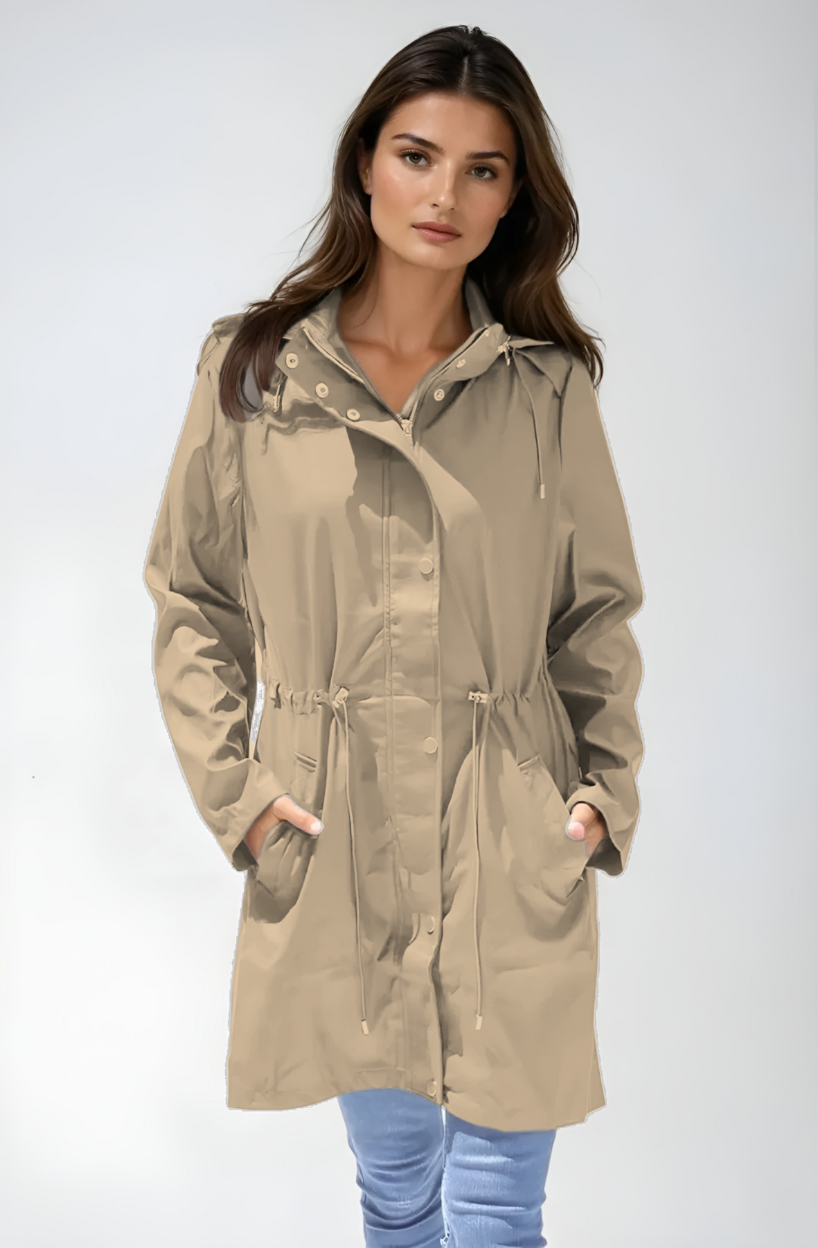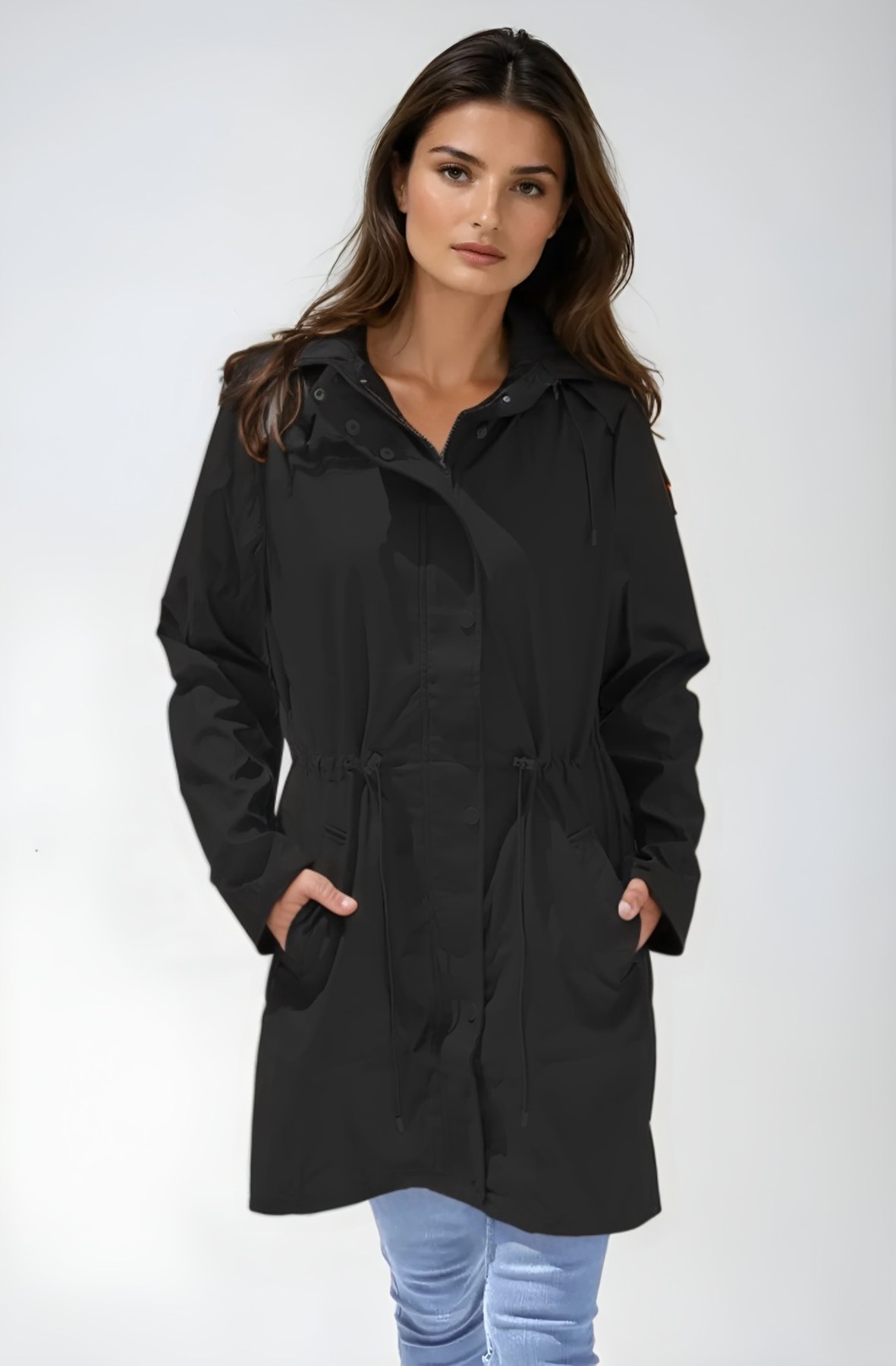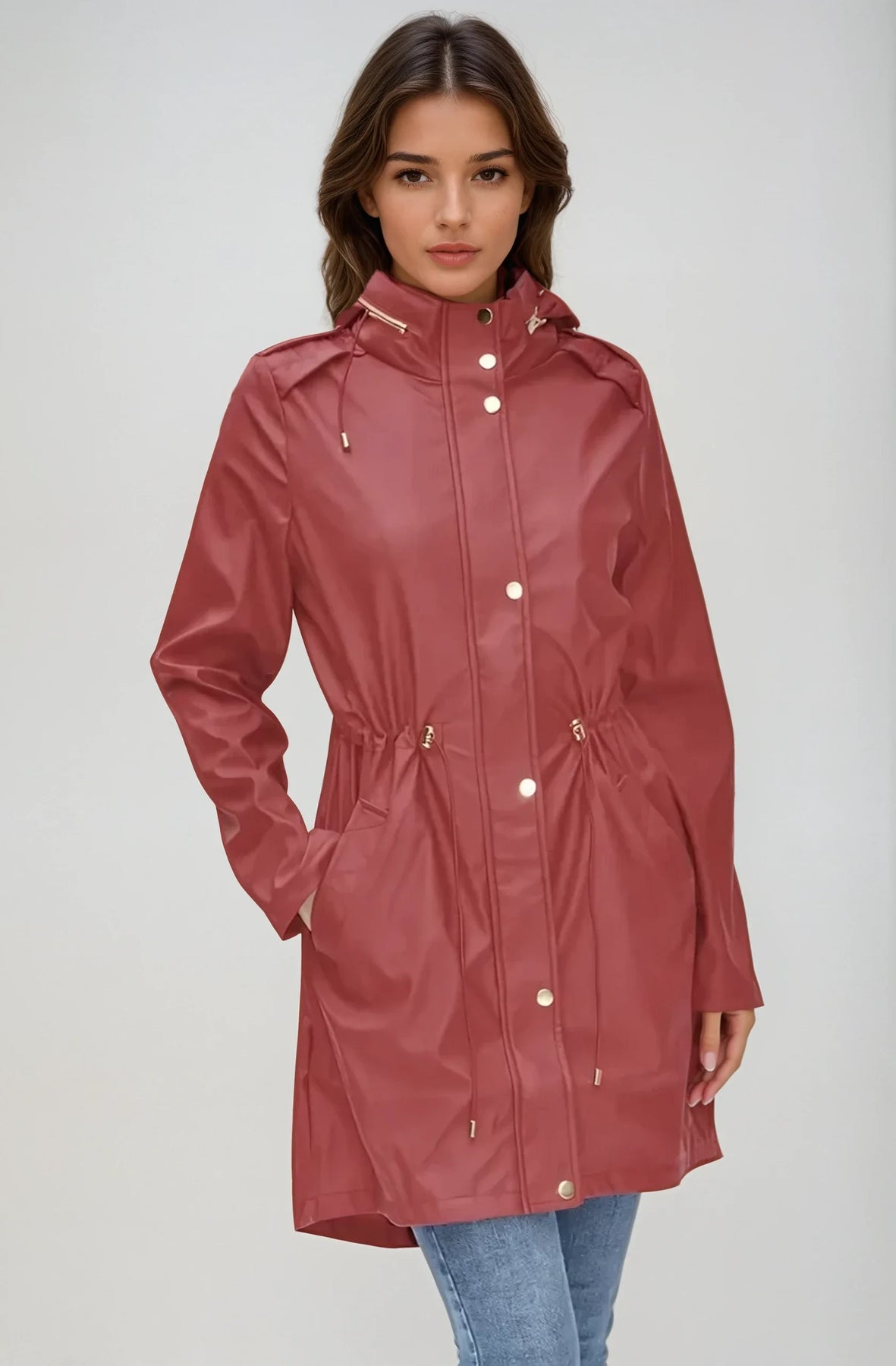 style SERENA - new fabric developed by Ciao Milano. Soft durable flowing slick feeling fabric. 100% water proof but extremely rich looking. Looks like a million dollars. Same style, hardware, and fit as TESS, ANNA, NIA etc., but extra longer to mid thigh with adjustable waist.