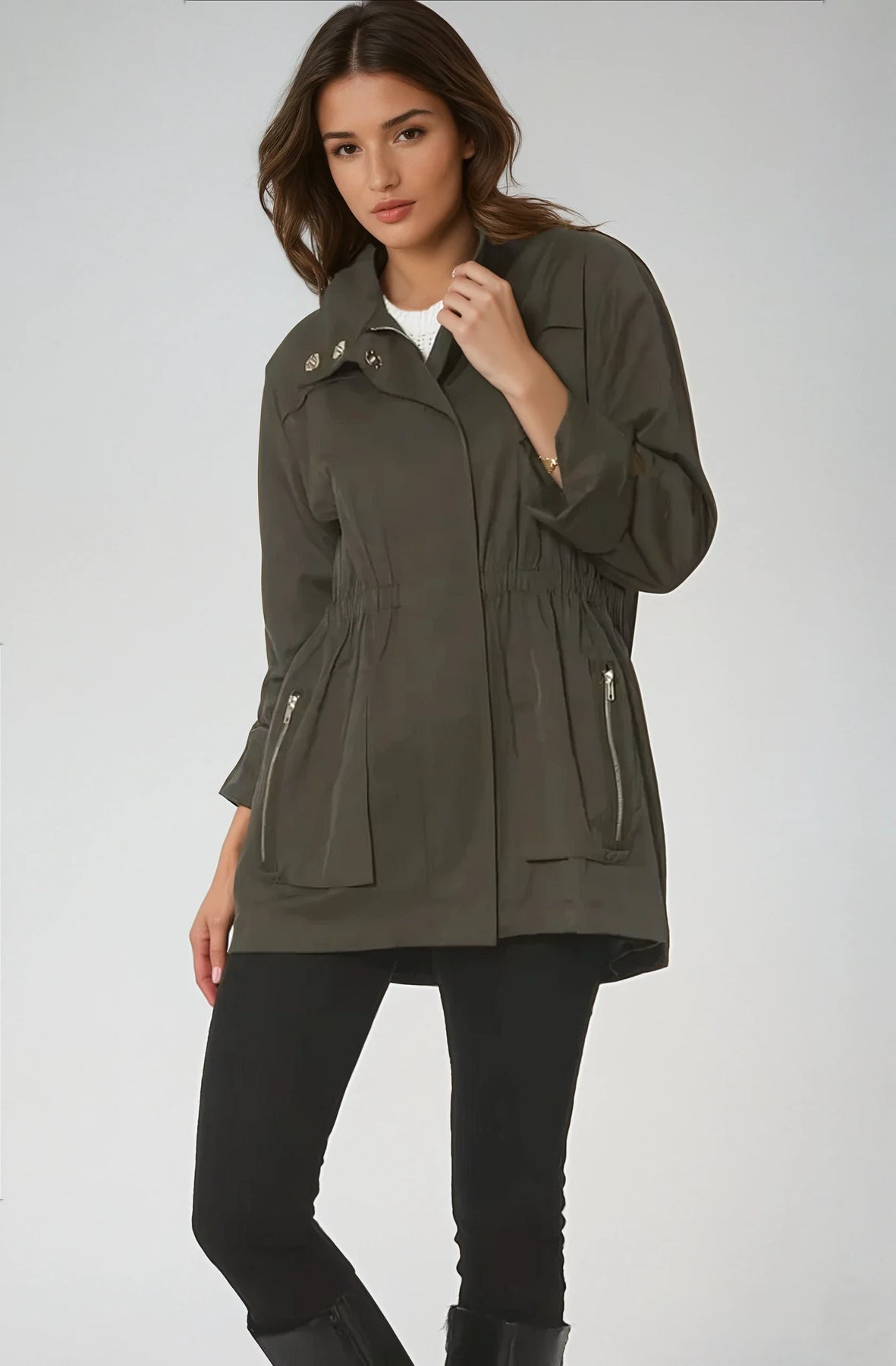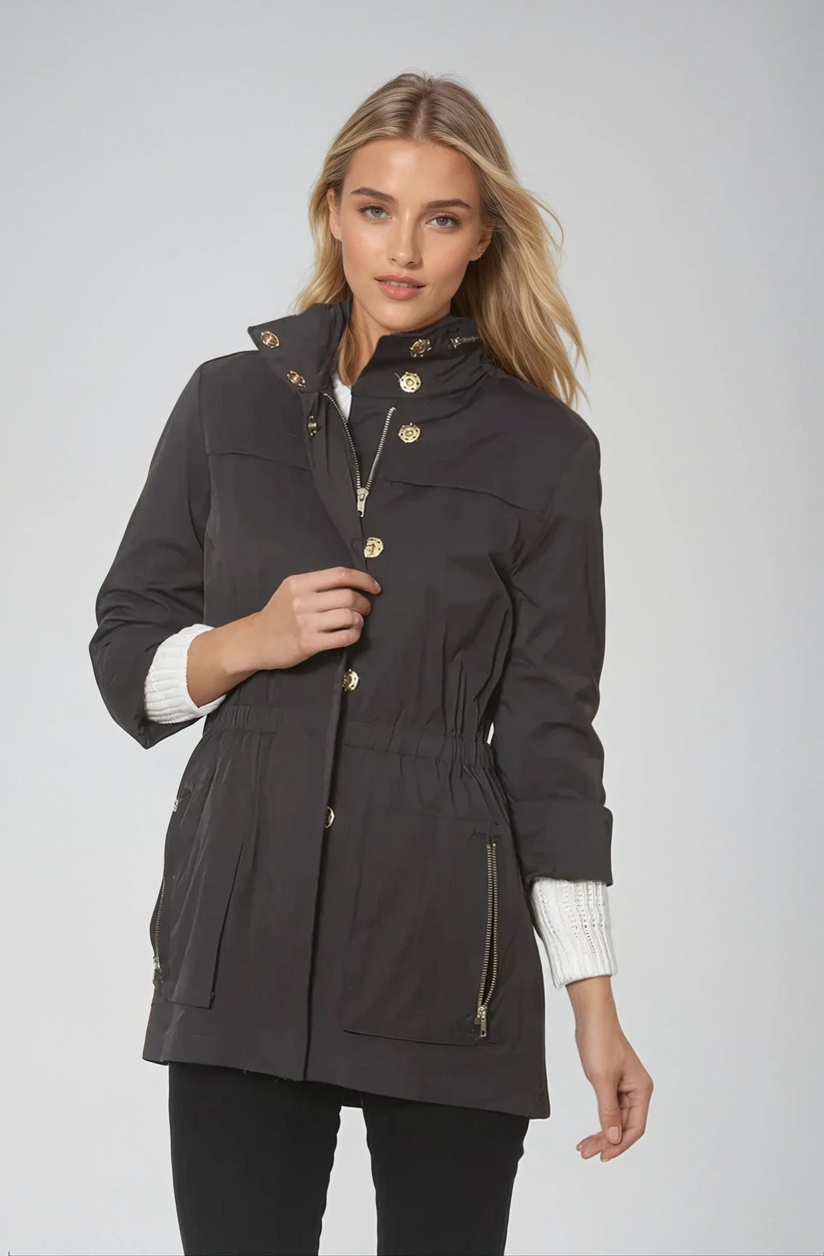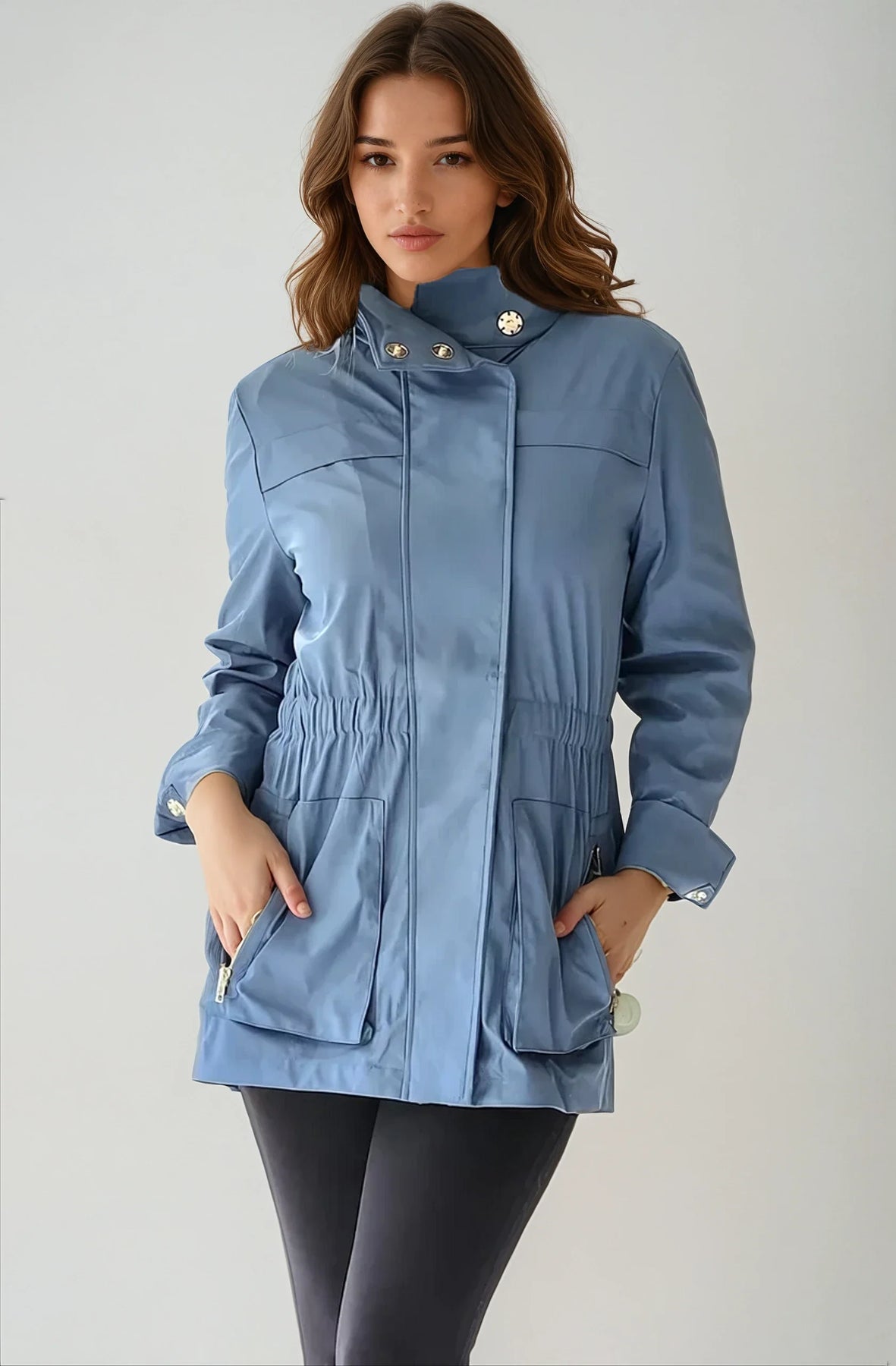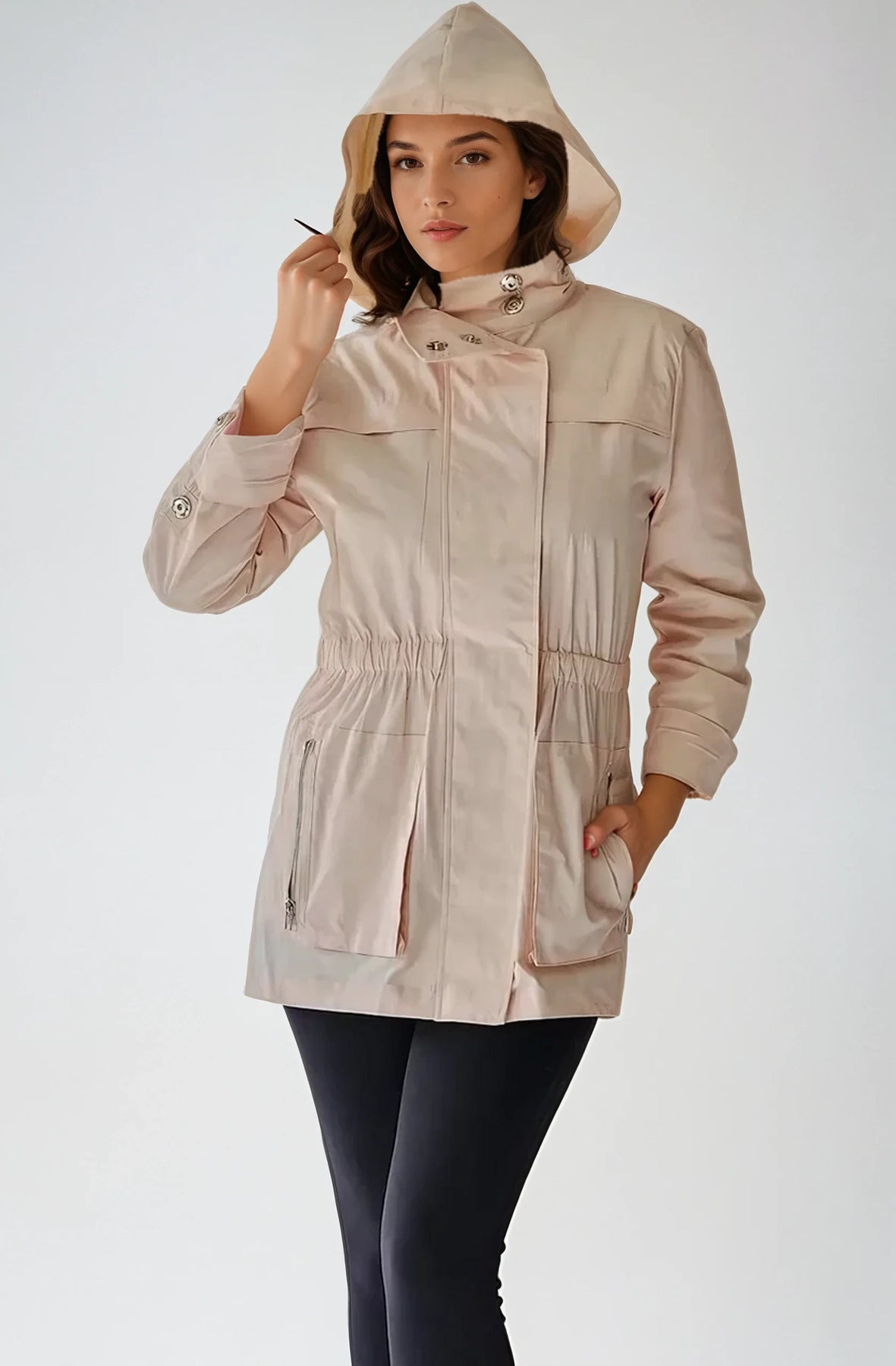 style TESS - Engineered to keep you dry during rainy seasons and designed to look fashionable year around. Breathable fabric for utmost comfort. Adjustable waist to define a feminine figure. Luxurious satin finish.  Fabric has a cotton feel.