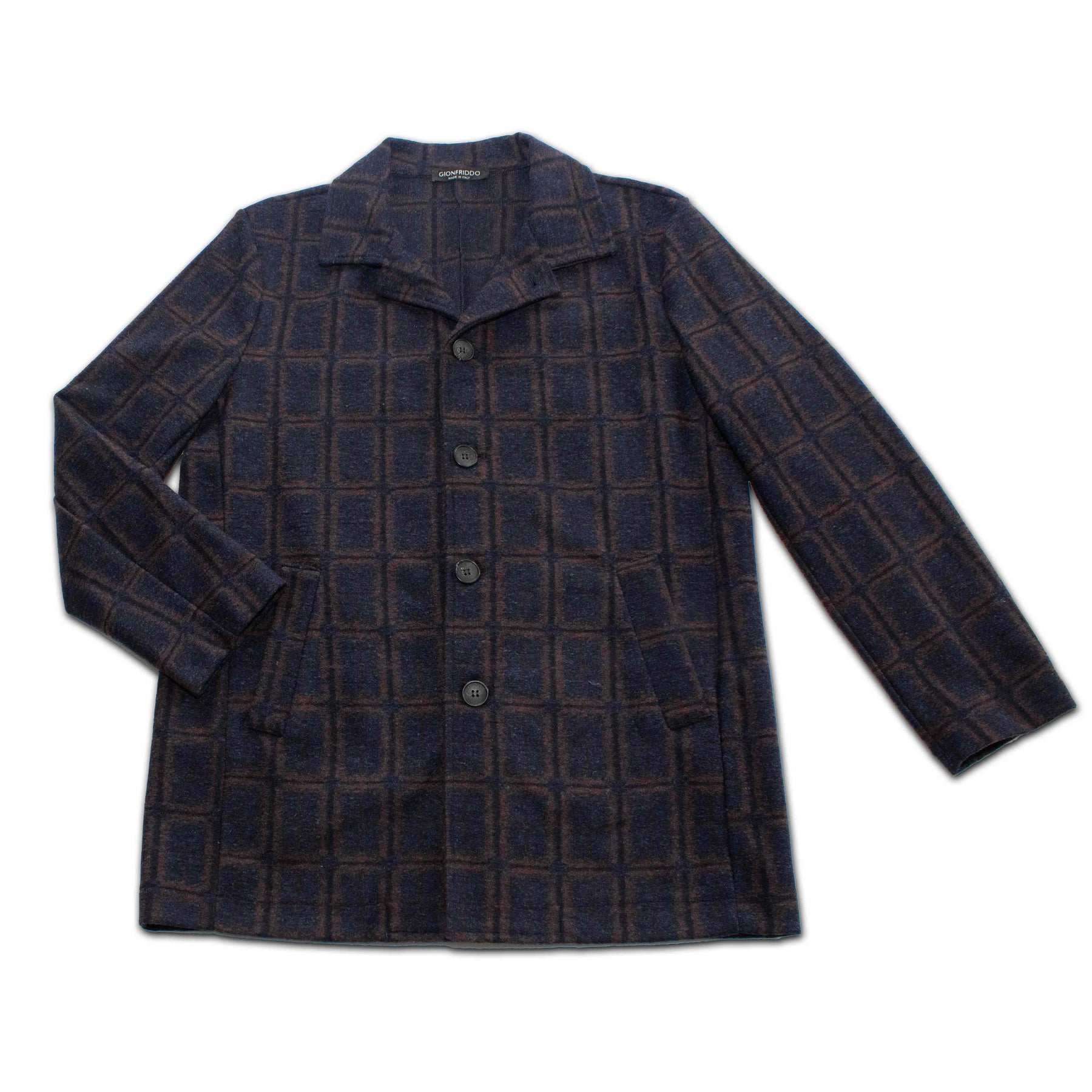 Stay stylish and warm in the Navy Russet Windowpane Wool Car Coat. This mid-length wool-blend piece features a navy and orange windowpane pattern, complemented by a classic button-front closure and notch lapel. The relaxed silhouette offers versatile styling options, perfect for elevating both casual and dressy occasions. Its timeless design and premium construction ensure lasting warmth and enduring style. Convenient exterior pockets and two generous inside pockets.