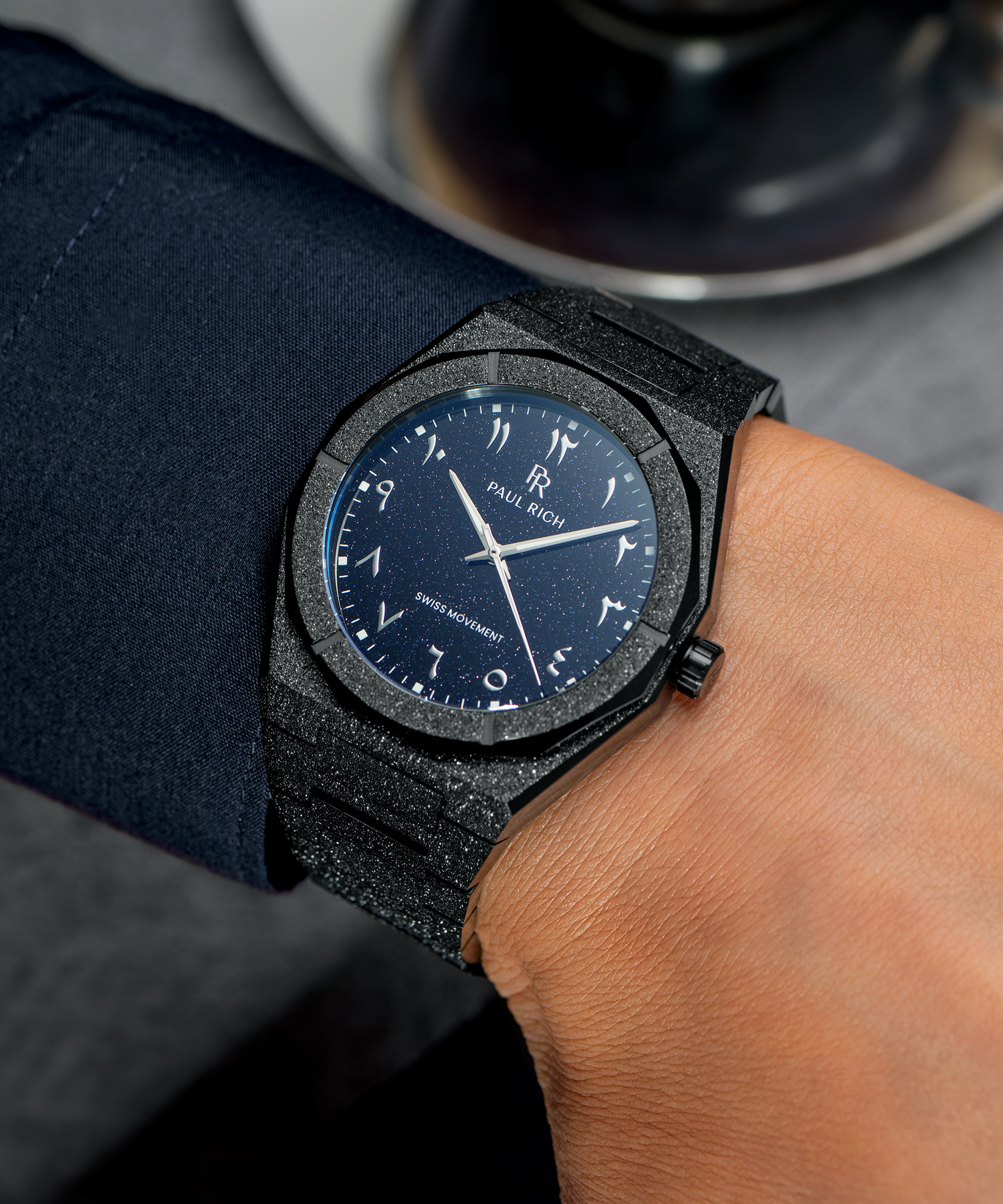 A fusion of cosmic elegance and Arabic heritage. This watch isn’t just about time—it’s about legacy. Arabic numerals on a galaxy dial, a nod to the Arabic world’s impact on math and astronomy. Wrapped in stainless steel with a frosted finish that hits like diamond dust. This isn’t just a watch; it’s culture on your wrist. Bold. Proud. Unmatched.