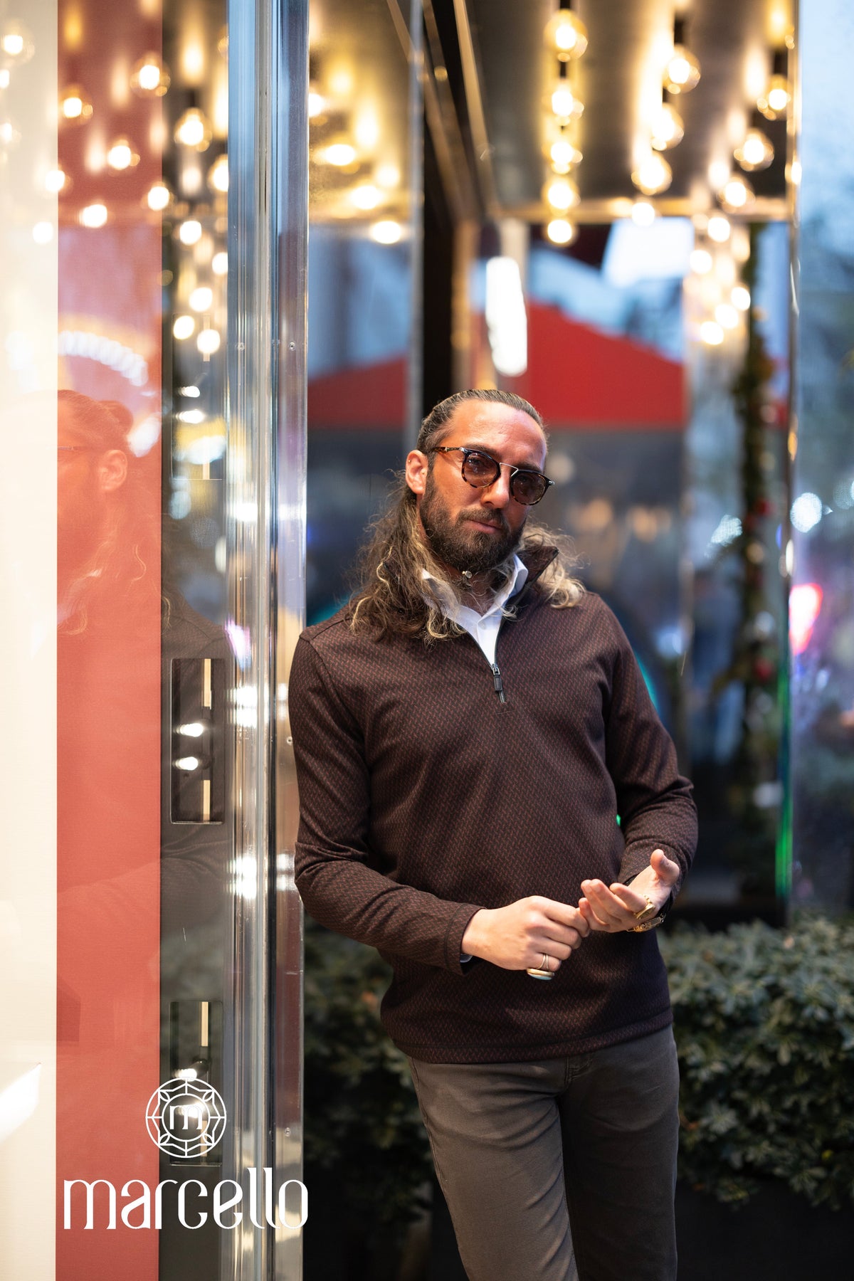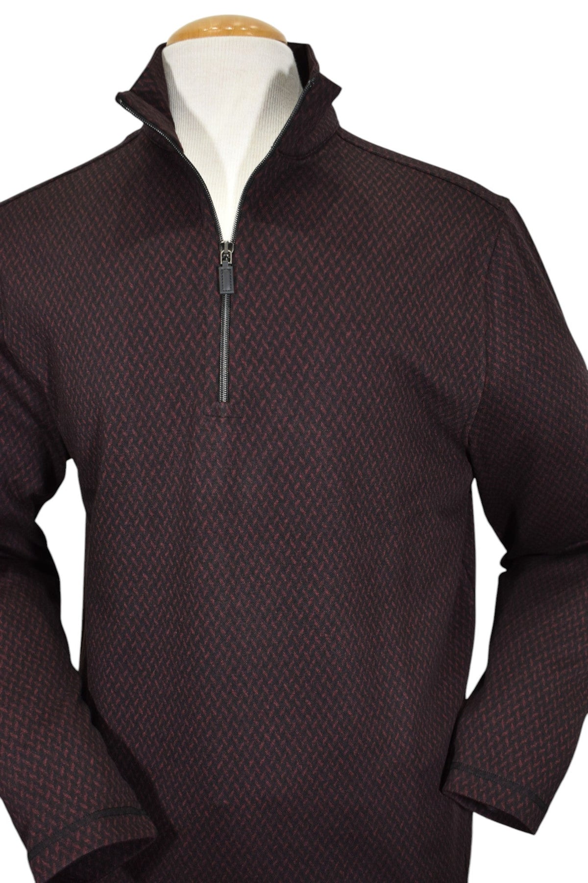 Experience the luxurious blend of soft cotton and viscose in our Marcello Monaco Wine Diamond Quarter Zip. The elegant diamond cable pattern, featuring rich wine and black tones, adds a touch of sophistication to any outfit. Lightweight and versatile, it's perfect for layering or wearing on its own. Elevate your wardrobe with this stylish staple.