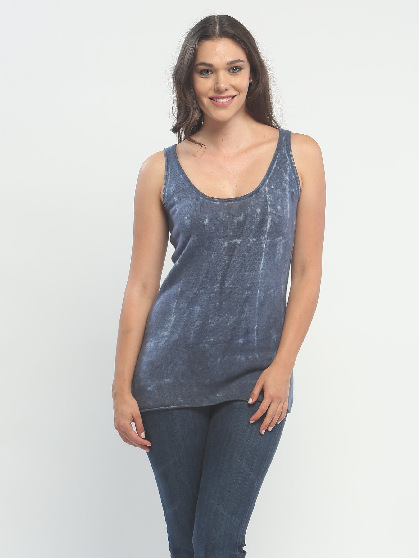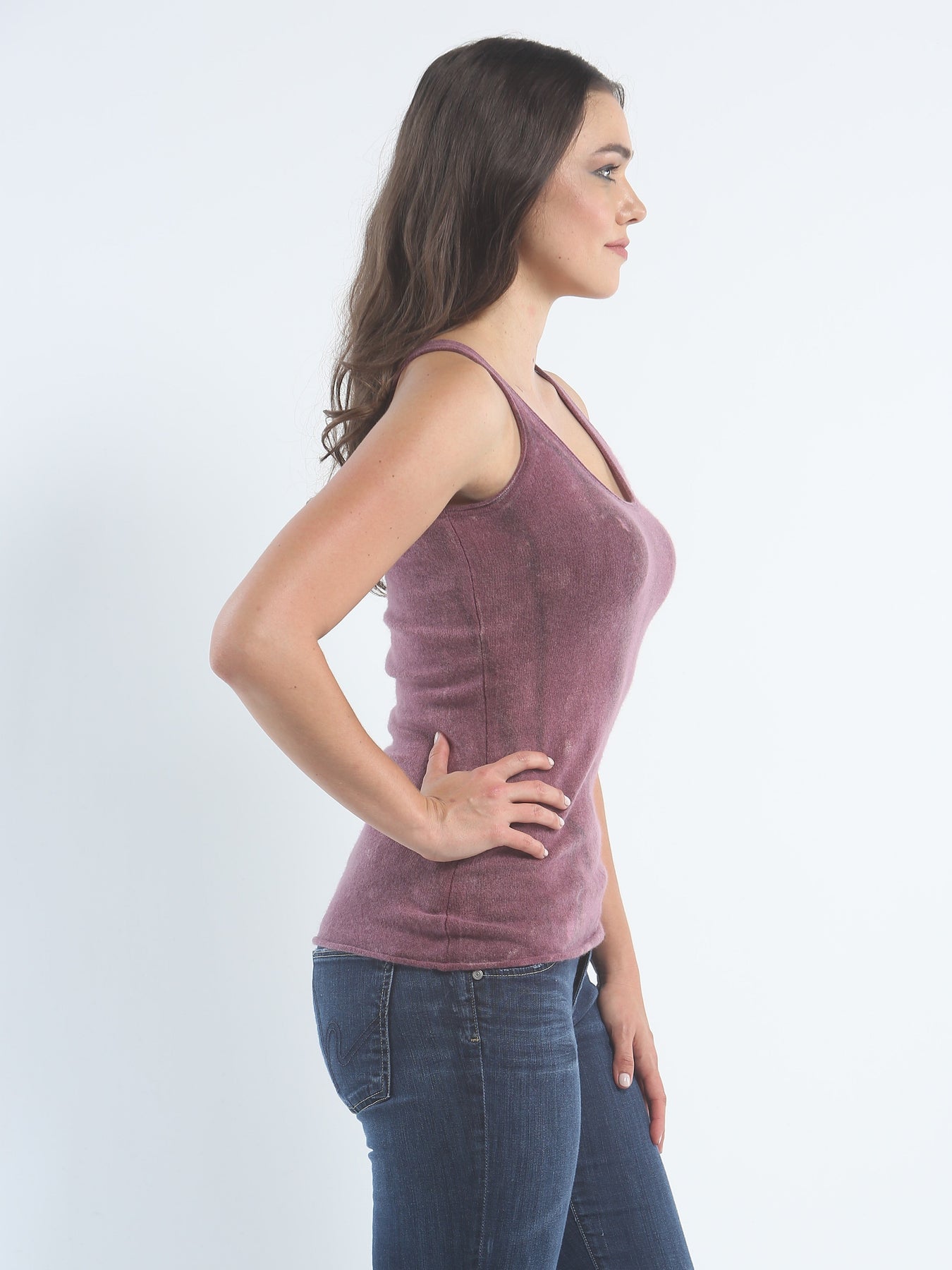 This cashmere shell tank top offers a unique twist to an essential wardrobe piece. Be simple and chic or layer with our hand painted simply cardigan. An essential must have for your wardrobe.
