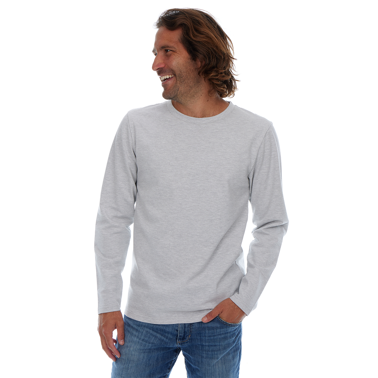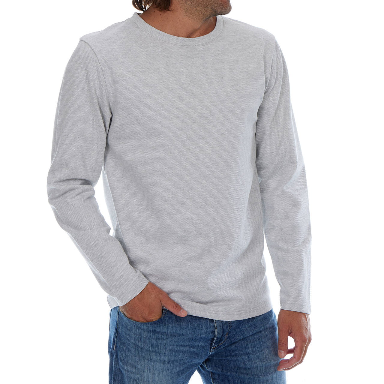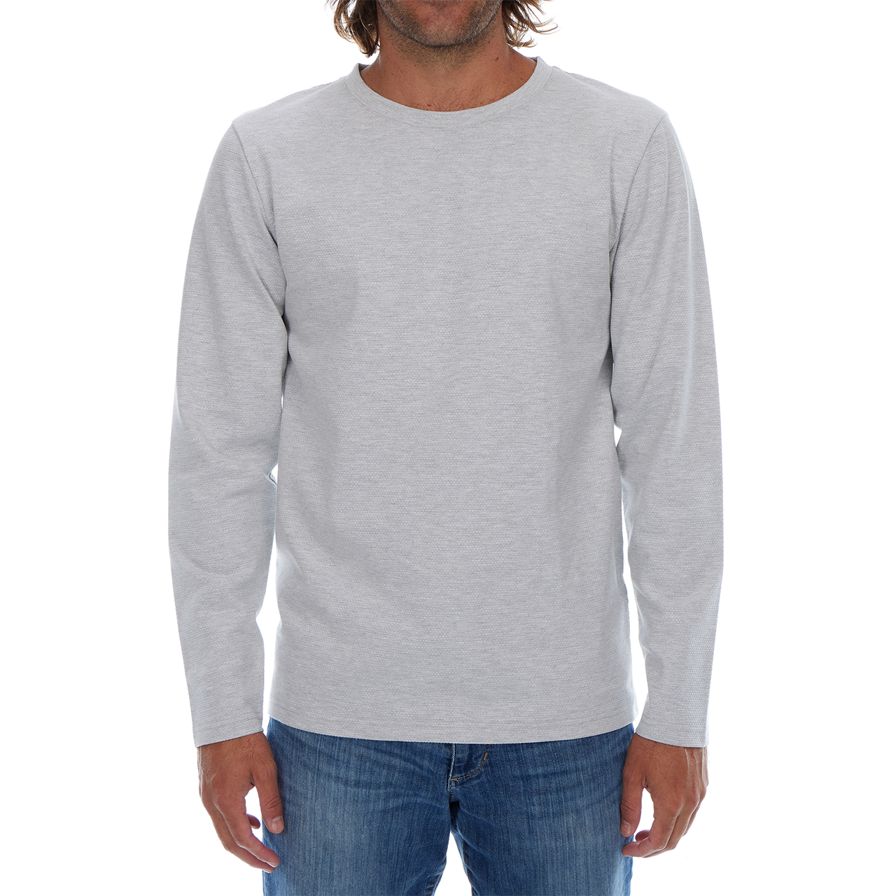 • A long sleeve textured crew neck tee.