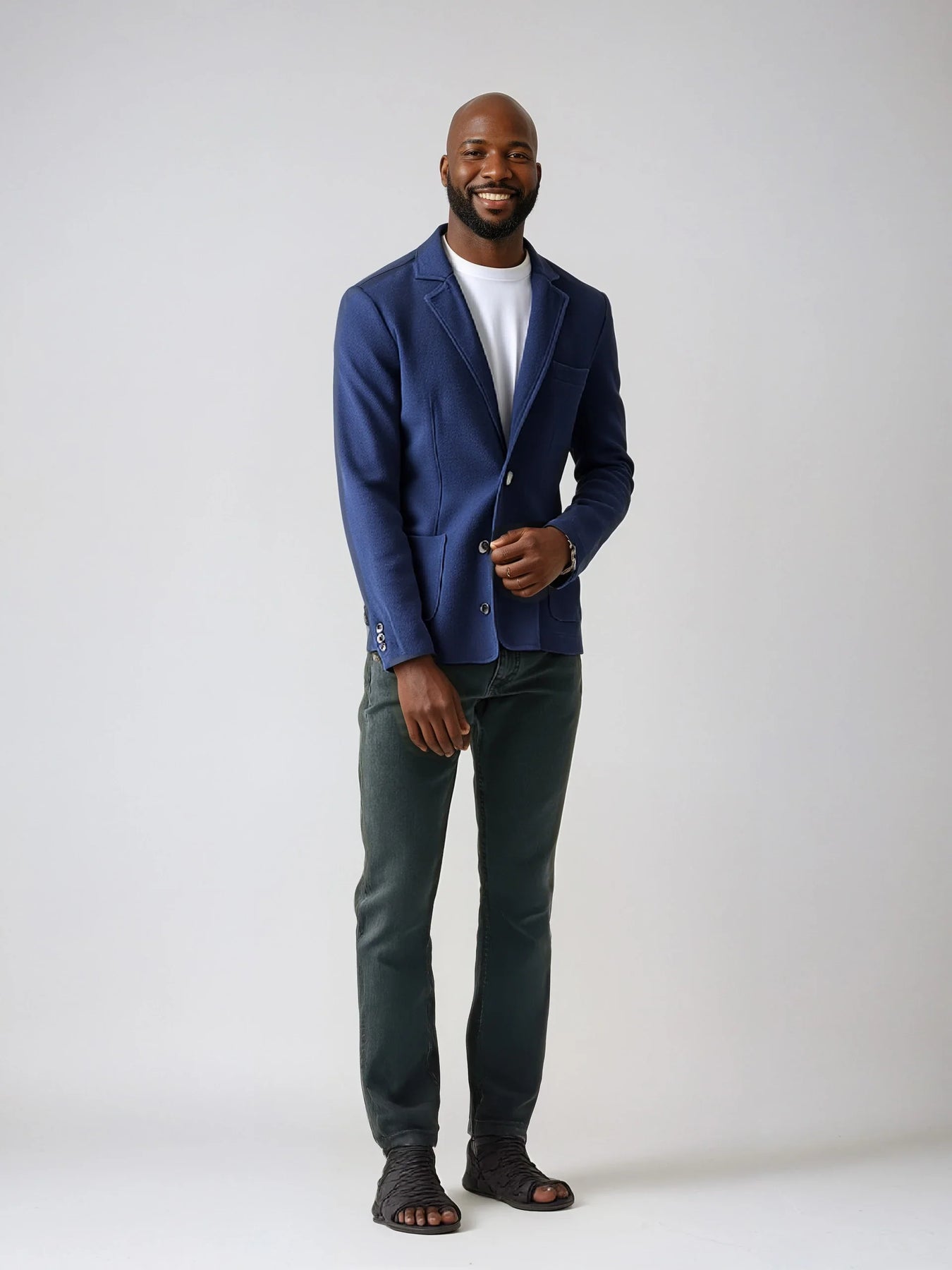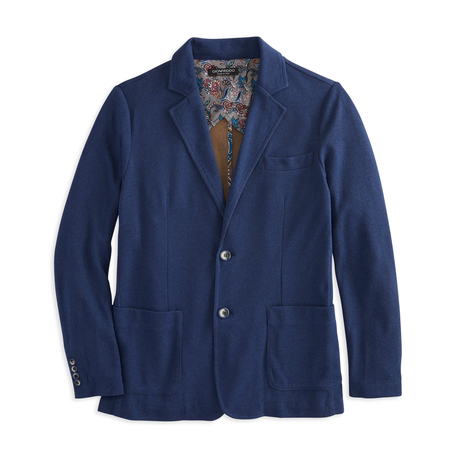 This sophisticated knit blazer is crafted to make a classy and stylish statement and tailored for an elegant fit. With two buttons, two sewn-on patch pockets, and a floral paisley lining, it's a perfect choice for any occasion, versatile enough to be paired with a jean or a more formal trouser.