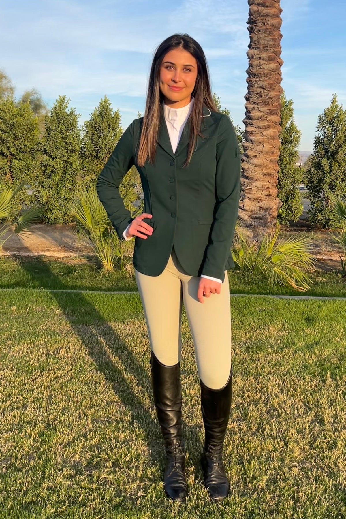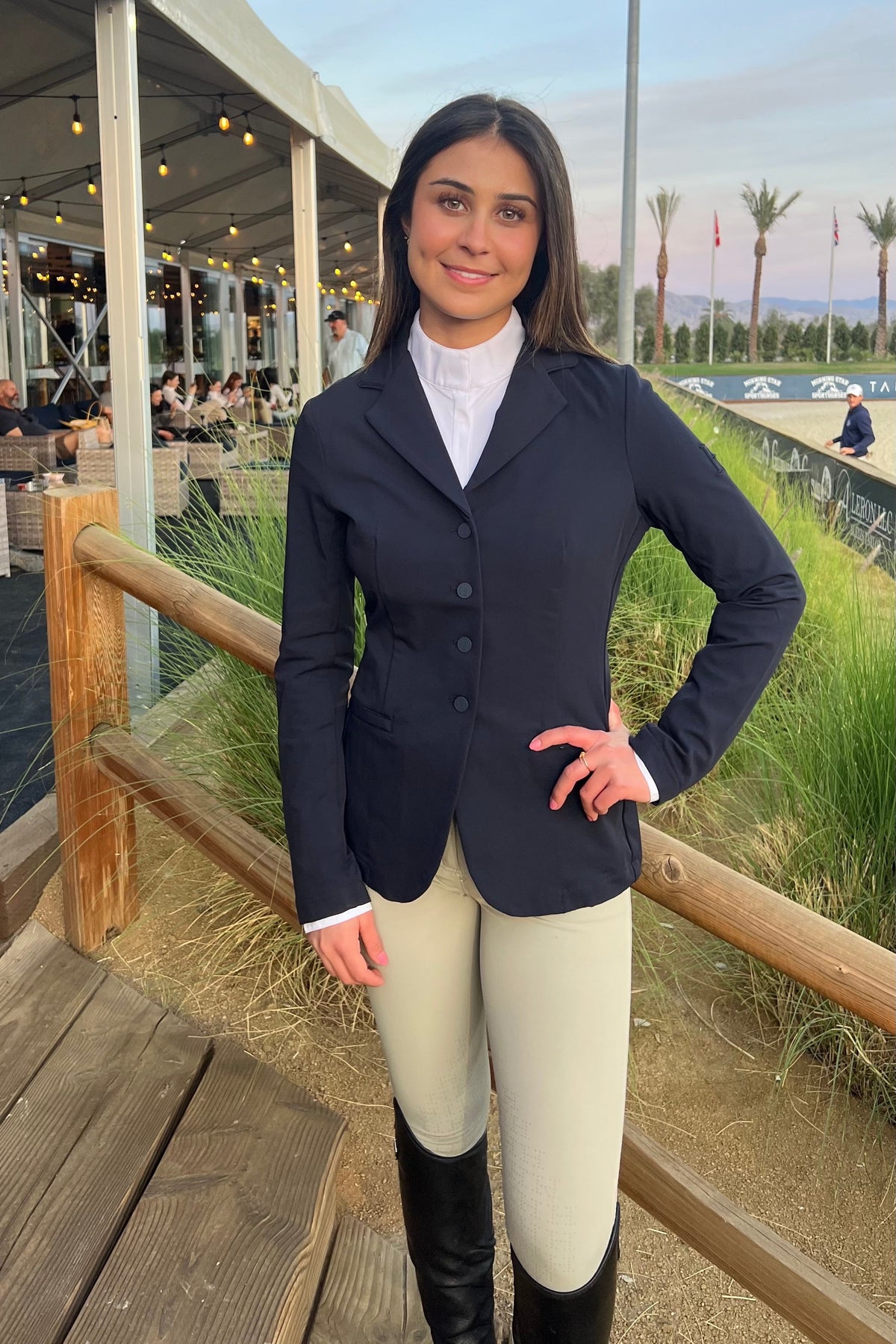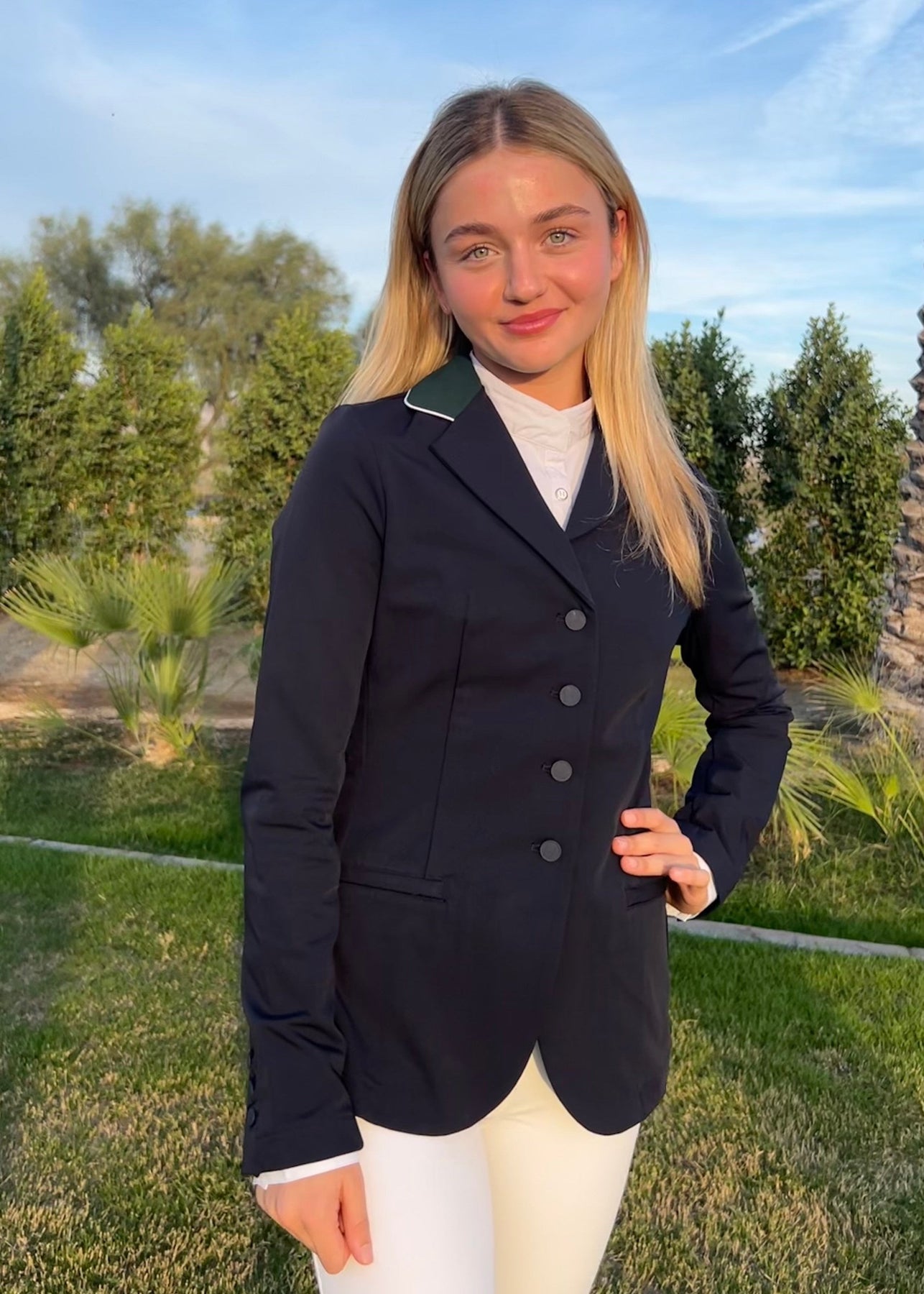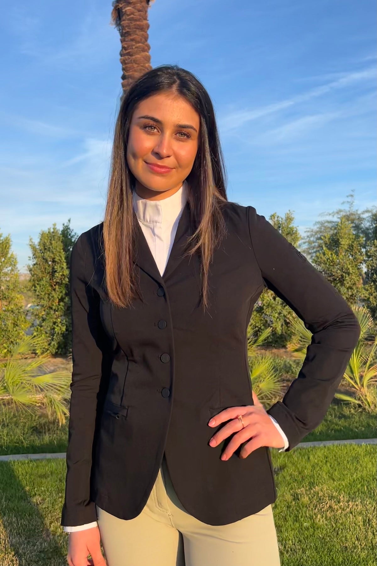 The Monet Competition Jacket is a water-repellent and a stretch show jacket.